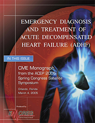 /Each year, nearly one million patients in the United States are hospitalized with acute decompensated heart failure (ADHF). In the past, there have been limited practice guidelines for the emergency management of ADHF within the spectrum of heart failure. Data from the ADHERE (the acute decompensated heart failure national registry),indicates that these patients are repeatedly hospitalized, and otherwise have a very high rate of morbidity and mortality. The management and care of this patient group remains suboptimal. This CME activity will review the latest diagnostic and therapeutic modalities for ADHF and suggest methods to improve the care for these patients at your institution. Insights and lessons from ADHERE will also be reviewed and discussed.